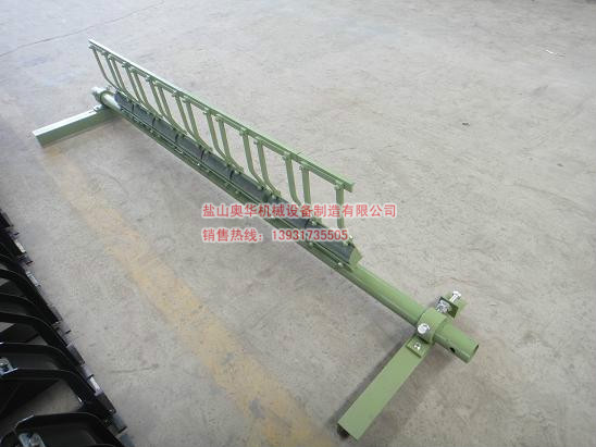 Alloy rubber cleaner installed in the head of the conveyor roller and the drum at the lower center of the horizontal 15 ° -30 ° within the smooth face of the alloy rubber cleaner with the flexibility of the rubber body itself, can automatically adjust the scraper and the conveyor conveyor The contact pressure between the tapes, and the cushioning effect of the rubber body.